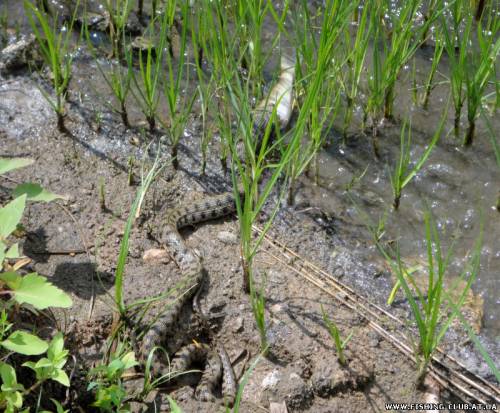 | Вчера 18.06.2011г отправился на рыбалку не на отдельно конкретную рыбу а решил половить всего по немного по этому взял соски, макушатник, попловочную удочку и конечно на толстолоба. На водоем прибыл в 4.20 и сразу разочарование место на котором хотел ловить уже занято проехал по всему водоему и решил остановиться рядом с тем местом. Людей как рыбаков так и отдыхающих очень было много видимо сказывается холера на Азовском море в результате чего для себя сделал вывод что лучше на выходные на рыбалку не ездить. Около 5.00 у меня уже стояли 2 соски, 1 макушатник, 1 поплавочная удочка, и 2 на толстолоба. на соски и поплавок цеплял кукурузу. опарыша, червя была всего лишь одна слабенькая поклевка и ту пропустил т.к. разлаживал др. удочку . Около 8 00 одну из сосок переоборудовал на лобатого а вторую и вовсе достал. в 9.20 уверенная поклевка поплавок резко ушел под воду удочка находилась в метрах 7 от меня но от радости первой поклевки я молнией добежал к ней подсечка и думаю зацеп хотя нет ощутил небольшие рывки. В это время соседи по рыбалки слева и справа увидев хоть какое-то оживление в рыбалки подскочили ко мне и как оказалась не зря т.к. я если и беру на рыбалку подхват то его не использую и рыбалка без него получается более удачной, но в данной ситуации был небольшой обрыв и подхват не помешал бы, да и лобатик хоть и маленький но успел зайти в камыш по этому я удочку отдал соседу а сам с его подхватом отправился в воду в это время лобатик сам вышел с камыша и сразу же оказался в подхватеБольше поклевок до 11.00 не было и я отправился домой. Как оказалось рыбалка не клеилась не только у меня а по всему водоему на небольшом участке метров 50 влево и право которые просматривались я насчитал около 25 поплавком на лба но не одной поклевки я не виде, а мои соседи поймали одного окуня и сазанчика на двоих. Лобатика в котором оказалась 1.5 кг. сразу думал отпустить но не хотелось ехать с пустыми руками домой и чтобы что-то показать дома жене решил взять домой. Поклевка была на фирменное техно самопал и каша не работала.