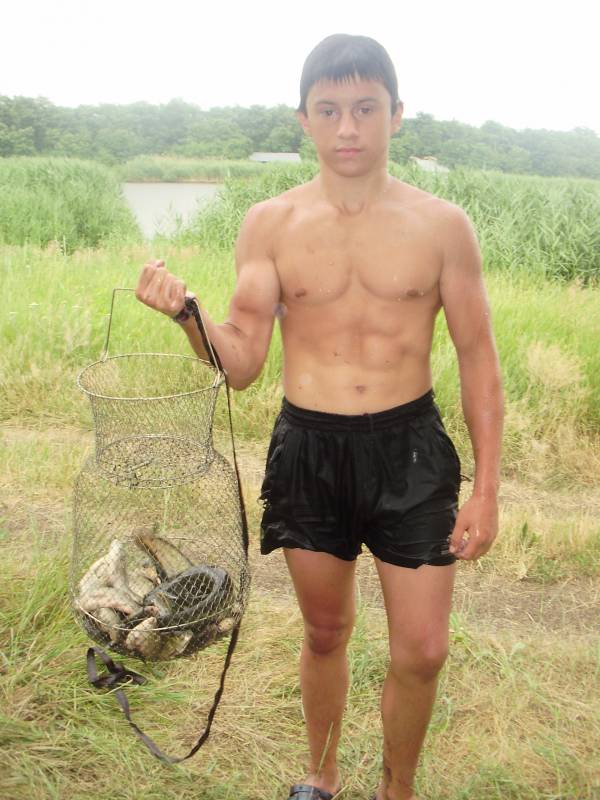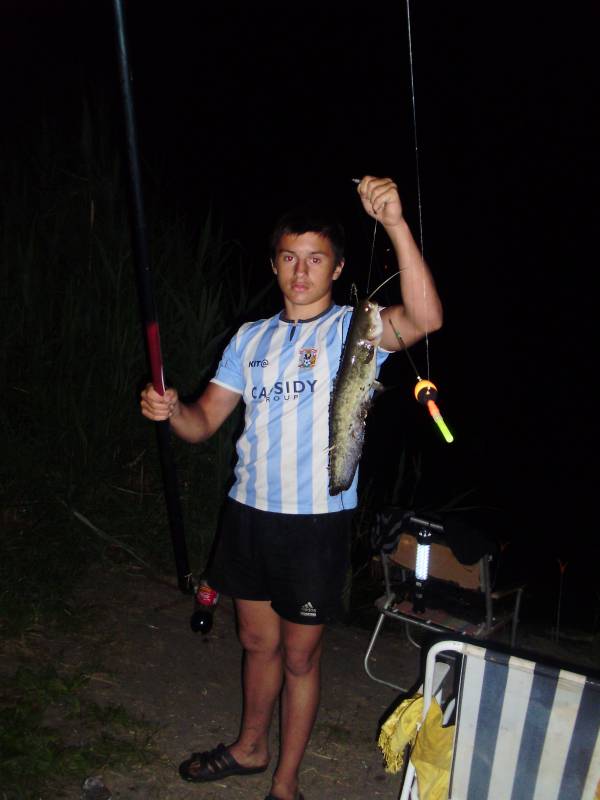 | Отправился папа со мной на ставок приехали мы в 23:50.Собрались ловить толстолобика ну не там то было .Как всегда я начинаю с маха 6 метрового я выставил нужную глубину и вот первый заброс от берега метров 10 и вот на червя клюнул вот такой маленький красавчик и примерно через час второй!!!